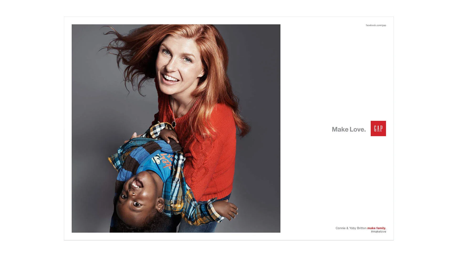 Amid the holiday noise, we chose to spotlight individuals who spread love through action, using social media to celebrate their compassionate contributions—from Tony Bennett founding a music foundation to Connie Britton embracing a blended family. The outcome was bright with clean, crisp photography and provocative copy. There was immediate gut reaction to the intimacy between the people in the images allowing Gap to tell an intimate relationship story, a rich texture story. Rising above the holiday hype, we honored those who spread love through action and used social media to highlight their compassionate contributions – from Tony Bennett making a music foundation, to Connie Britton making a mixed family.